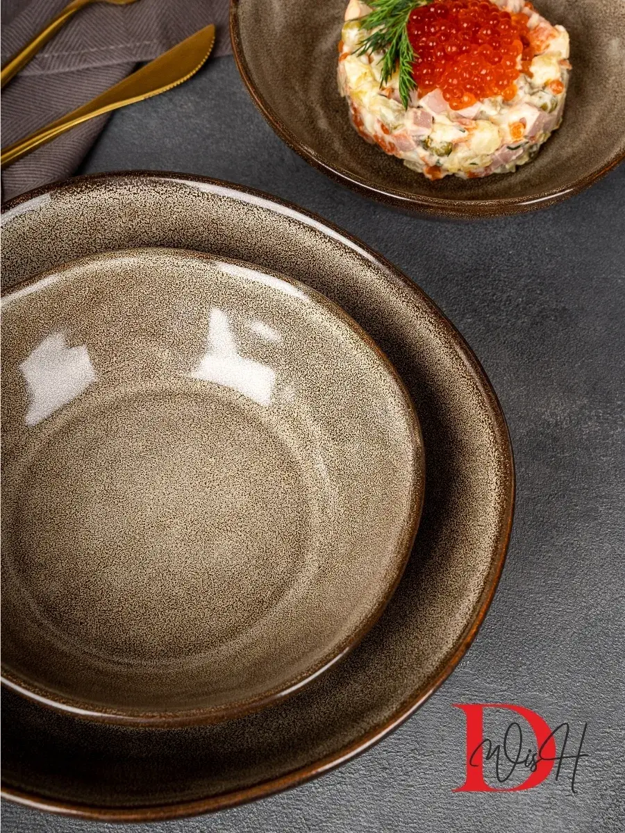 Неровные формы, неоднородный, красивый цвет - вот что придаёт уникальность и вкус данной посуде! Тарелка в скандинавском стиле "мятый фарфор" станет прекрасным дизайнерским решением и привлечёт взгляды Ваших гостей. Внимание! Каждая тарелка изготовлена вручную, что дает индивидуальность каждому изделию, оттенки могут отличаться! Изготовлена в 5 размерах: диаметром 21 см, 28 см и глубокие тарелки диаметром 16,5 см 19,5 см и 22 см. Подходит для использования в посудомоечной машине, не рекомендуем использовать в микроволновке из-за неровной поверхности. Смотрите другие стильные и современные варианты сервировочных тарелок от фирмы DWisH.