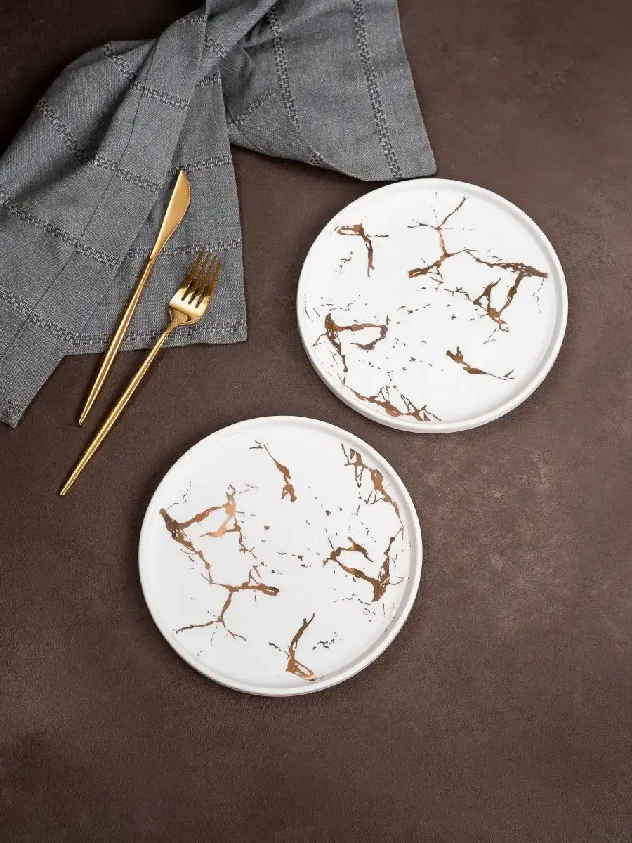 Если Вы стремитесь к здоровому образу жизни (ЗОЖ) и при этом не желаете отказываться от разнообразных кулинарных наслаждений, то наше изделие — идеальное решение для Вас. Тарелки с золотом созданы с использованием самых современных технологий и из натуральных материалов, что делает их безопасными и экологичными. Наша посуда идеально подходит для детей, а также для правильного питания (пп) взрослых. Однако наша коллекция тарелок с позолотой не похожа на обычные предметы для кухни! Каждая тарелочка оформлена с оригинальным дизайном и уникальными дизайнерскими элементами. Наши дизайнеры знают, как привлечь внимание и обратить любые тарелки в произведения искусства. От ярких декоративных элементов и узоров до элегантных рисунков — Вы найдете идеальную тарелку для любого случая. Тарелки бренда DWisH являются универсальными и многофункциональными. Они отлично подходят для сервировки праздничных столов или для повседневного использования. Вы сможете разместить на них широкий ассортимент блюд, начиная от китайской кухни до домашних десертов и сладостей в виде торта или пирожных. Особая форма с бортиком придаст изысканности самым вкусным сухофруктам, сырному сету, роллам, суши или фруктам. Наша посуда не только придаёт эстетики любимым блюдам, словно Вы в ресторане, кафе или кейтеринге, но и помогает при похудении. Она легкая и удобная в использовании, идеально подходит для каши на завтрак или салата, закусок с рыбой, сыром и орехами. Благодаря ручной работе и внимательности, внесенной в каждую деталь, Вы почувствуете заботу, которая вложена в каждую тарелку. Наша новая посуда также отлично подойдет в качестве подарка. Завернутая в подарочную упаковку с эстетичным принтом, она станет прекрасным сюрпризом для близких и друзей. Приобретая нашу интересную посуду, она станет не только Вашим надежным инвентарем на кухне, но и прекрасным элементом декора для украшения Вашего дома. Позвольте себе окунуться в мир эстетики и ощутить вкус и красоту в каждой детали.