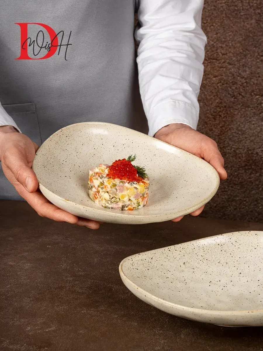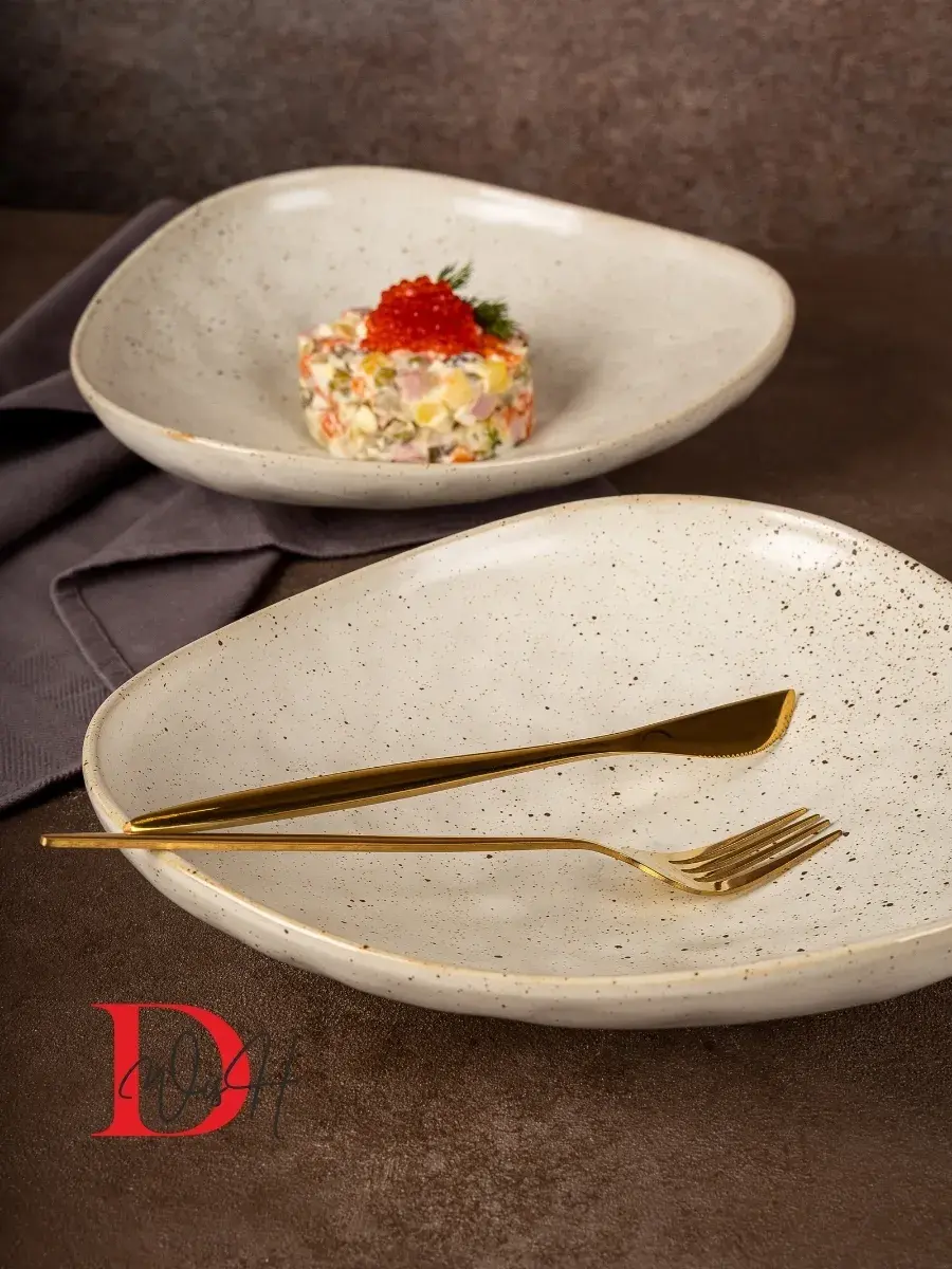 Если Вы стремитесь к здоровому образу жизни (ЗОЖ) и при этом не желаете отказываться от разнообразных кулинарных наслаждений, то наше изделие — идеальное решение для Вас. Тарелки неровные из мятого фарфора созданы с использованием самых современных технологий и из натуральных материалов, что делает их безопасными и экологичными. Однако наша коллекция тарелок не похожа на обычные предметы для кухни! Каждая тарелочка оформлена с оригинальным дизайном и уникальными дизайнерскими элементами. Наши дизайнеры знают, как привлечь внимание и обратить любые тарелки в произведения искусства. От ярких декоративных элементов и узоров до элегантных рисунков — Вы найдете идеальную тарелку для любого случая. Тарелки бренда DWisH являются универсальными и многофункциональными. Они отлично подходят для сервировки праздничных столов или для повседневного использования. Вы сможете разместить на них широкий ассортимент блюд, начиная от китайской кухни до домашних десертов и сладостей в виде торта или пирожных. Особая форма треугольная или яйцевидная придаст изысканности самым вкусным сухофруктам, сырному сету, роллам, суши или фруктам. Наша посуда не только придаёт эстетики любимым блюдам, словно Вы в ресторане, кафе или кейтеринге, но и помогает при похудении. Она легкая и удобная в использовании, идеально подходит для каши на завтрак или салата, закусок с рыбой, сыром и орехами. Благодаря ручной работе и внимательности, внесенной в каждую деталь, Вы почувствуете заботу, которая вложена в каждую тарелку. Наша новая посуда также отлично подойдет в качестве подарка. Завернутая в подарочную упаковку с эстетичным принтом, она станет прекрасным сюрпризом для близких и друзей. Приобретая нашу интересную посуду, она станет не только Вашим надежным инвентарем на кухне, но и прекрасным элементом декора для украшения Вашего дома. Позвольте себе окунуться в мир эстетики и ощутить вкус и красоту в каждой детали.