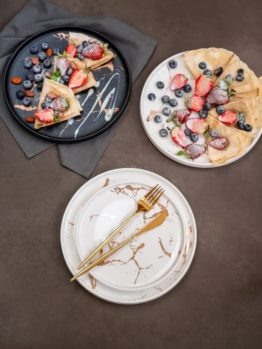 Если Вы стремитесь к здоровому образу жизни (ЗОЖ) и при этом не желаете отказываться от разнообразных кулинарных наслаждений, то наше изделие — идеальное решение для Вас. Тарелки с золотом созданы с использованием самых современных технологий и из натуральных материалов, что делает их безопасными и экологичными. Наша посуда идеально подходит для детей, а также для правильного питания (пп) взрослых. Однако наша коллекция тарелок с позолотой не похожа на обычные предметы для кухни! Каждая тарелочка оформлена с оригинальным дизайном и уникальными дизайнерскими элементами. Наши дизайнеры знают, как привлечь внимание и обратить любые тарелки в произведения искусства. От ярких декоративных элементов и узоров до элегантных рисунков — Вы найдете идеальную тарелку для любого случая. Тарелки бренда DWisH являются универсальными и многофункциональными. Они отлично подходят для сервировки праздничных столов или для повседневного использования. Вы сможете разместить на них широкий ассортимент блюд, начиная от китайской кухни до домашних десертов и сладостей в виде торта или пирожных. Особая форма с бортиком придаст изысканности самым вкусным сухофруктам, сырному сету, роллам, суши или фруктам. Наша посуда не только придаёт эстетики любимым блюдам, словно Вы в ресторане, кафе или кейтеринге, но и помогает при похудении. Она легкая и удобная в использовании, идеально подходит для каши на завтрак или салата, закусок с рыбой, сыром и орехами. Благодаря ручной работе и внимательности, внесенной в каждую деталь, Вы почувствуете заботу, которая вложена в каждую тарелку. Наша новая посуда также отлично подойдет в качестве подарка. Завернутая в подарочную упаковку с эстетичным принтом, она станет прекрасным сюрпризом для близких и друзей. Приобретая нашу интересную посуду, она станет не только Вашим надежным инвентарем на кухне, но и прекрасным элементом декора для украшения Вашего дома. Позвольте себе окунуться в мир эстетики и ощутить вкус и красоту в каждой детали.