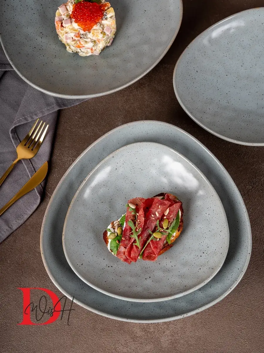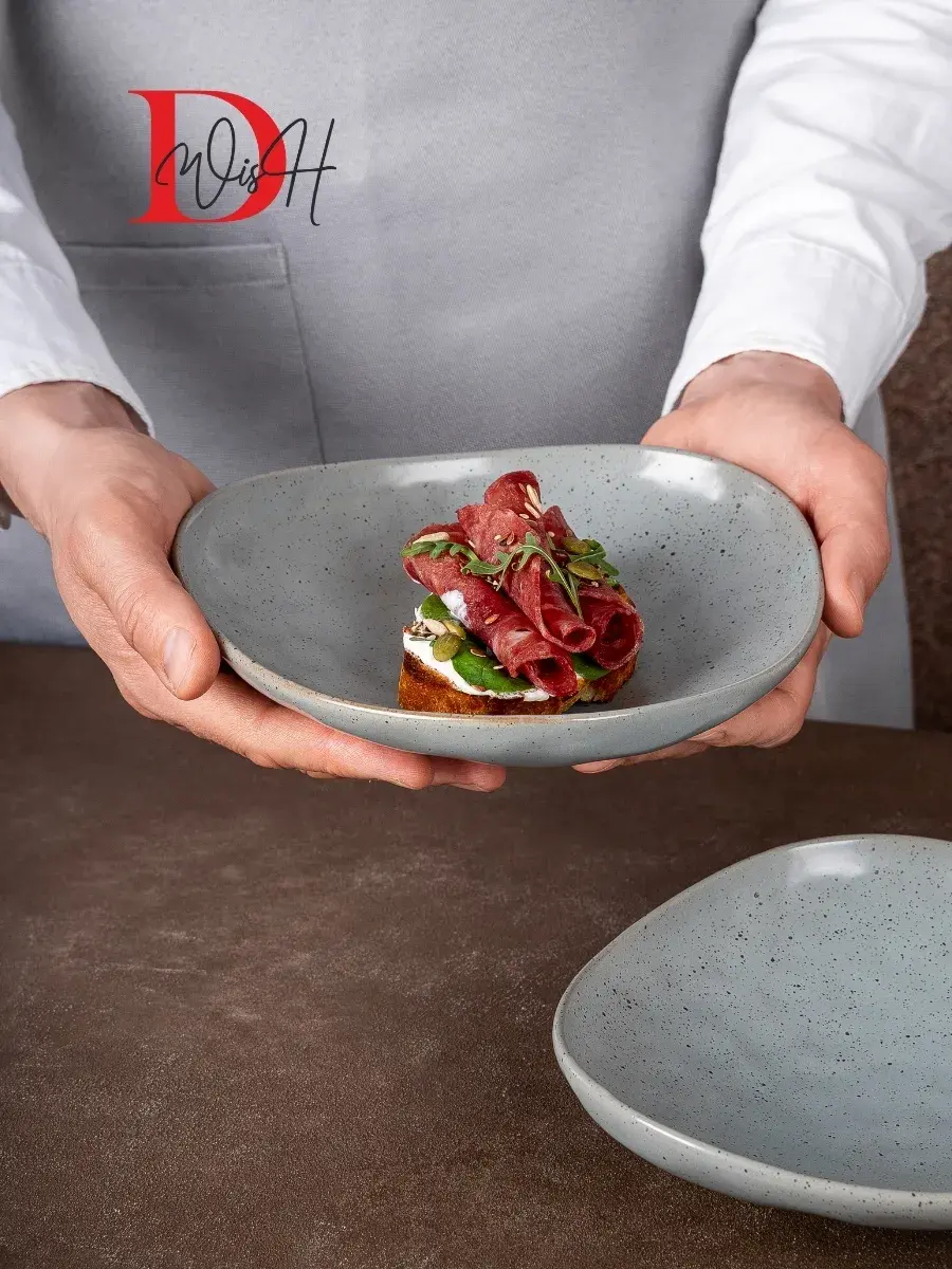 Если Вы стремитесь к здоровому образу жизни (ЗОЖ) и при этом не желаете отказываться от разнообразных кулинарных наслаждений, то наше изделие — идеальное решение для Вас. Тарелки неровные из мятого фарфора созданы с использованием самых современных технологий и из натуральных материалов, что делает их безопасными и экологичными. Однако наша коллекция тарелок не похожа на обычные предметы для кухни! Каждая тарелочка оформлена с оригинальным дизайном и уникальными дизайнерскими элементами. Наши дизайнеры знают, как привлечь внимание и обратить любые тарелки в произведения искусства. От ярких декоративных элементов и узоров до элегантных рисунков — Вы найдете идеальную тарелку для любого случая. Тарелки бренда DWisH являются универсальными и многофункциональными. Они отлично подходят для сервировки праздничных столов или для повседневного использования. Вы сможете разместить на них широкий ассортимент блюд, начиная от китайской кухни до домашних десертов и сладостей в виде торта или пирожных. Особая форма треугольная или яйцевидная придаст изысканности самым вкусным сухофруктам, сырному сету, роллам, суши или фруктам. Наша посуда не только придаёт эстетики любимым блюдам, словно Вы в ресторане, кафе или кейтеринге, но и помогает при похудении. Она легкая и удобная в использовании, идеально подходит для каши на завтрак или салата, закусок с рыбой, сыром и орехами. Благодаря ручной работе и внимательности, внесенной в каждую деталь, Вы почувствуете заботу, которая вложена в каждую тарелку. Наша новая посуда также отлично подойдет в качестве подарка. Завернутая в подарочную упаковку с эстетичным принтом, она станет прекрасным сюрпризом для близких и друзей. Приобретая нашу интересную посуду, она станет не только Вашим надежным инвентарем на кухне, но и прекрасным элементом декора для украшения Вашего дома. Позвольте себе окунуться в мир эстетики и ощутить вкус и красоту в каждой детали.