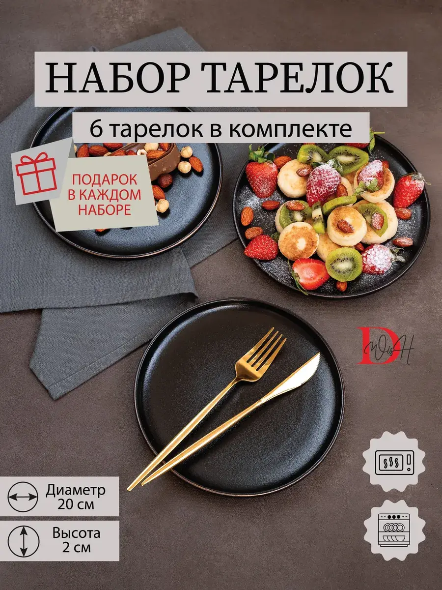 Изысканная классика и современный минимализм - все это о посуде премиум класса бренда DWisH. Стильные тарелки станут отличным подарком маме, жене, сестре или коллеге, а также украсят обеденный стол в вашем доме. Тарелки изготовлены из прочного фарфора высшего премиального качества, подходят для мытья в посудомоечной машине. В ассортименте плоские тарелки двух размеров. Возможна покупка двух или шести штук. Тарелки со стильной золотой окантовкой, поэтому нагревать их в микроволновке нельзя. Перед покупкой обратите внимание на фото с параметрами тарелки и количеством. Мы позаботились о качественной упаковке товара, чтобы хрупкое изделие доставили до каждого покупателя целым. Будем рады видеть Вас в числе наших счастливых покупателей!